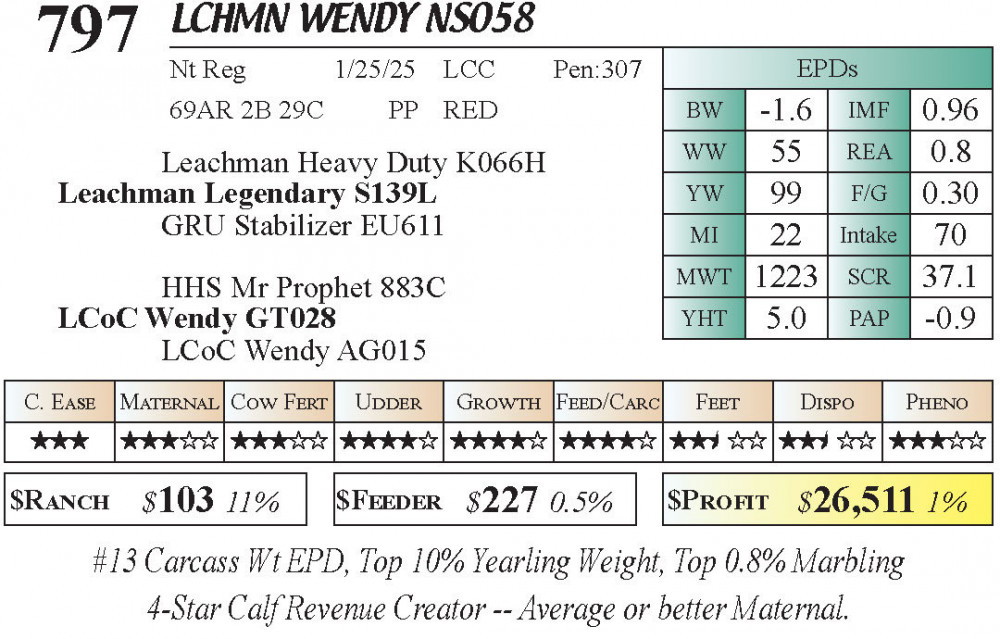 LCHMN Wendy NS058 (#797) 3.22.26 Leachman Cattle Spring Female Sale 11:30 AM MTN Stabilizer Female