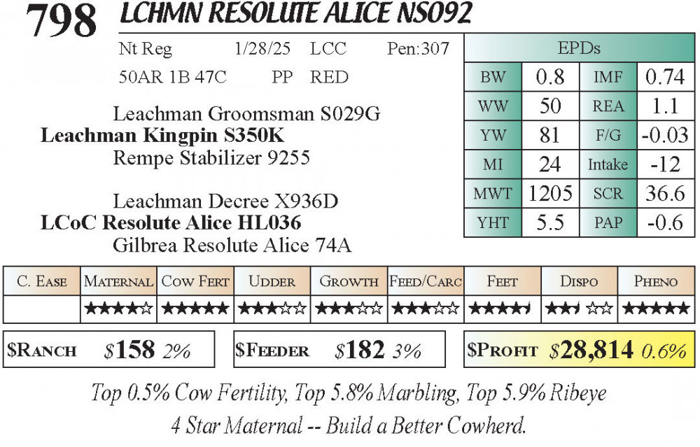LCHMN Resolute Alice NS092 (#798) 3.22.26 Leachman Cattle Spring Female Sale 11:30 AM MTN Stabilizer Female
