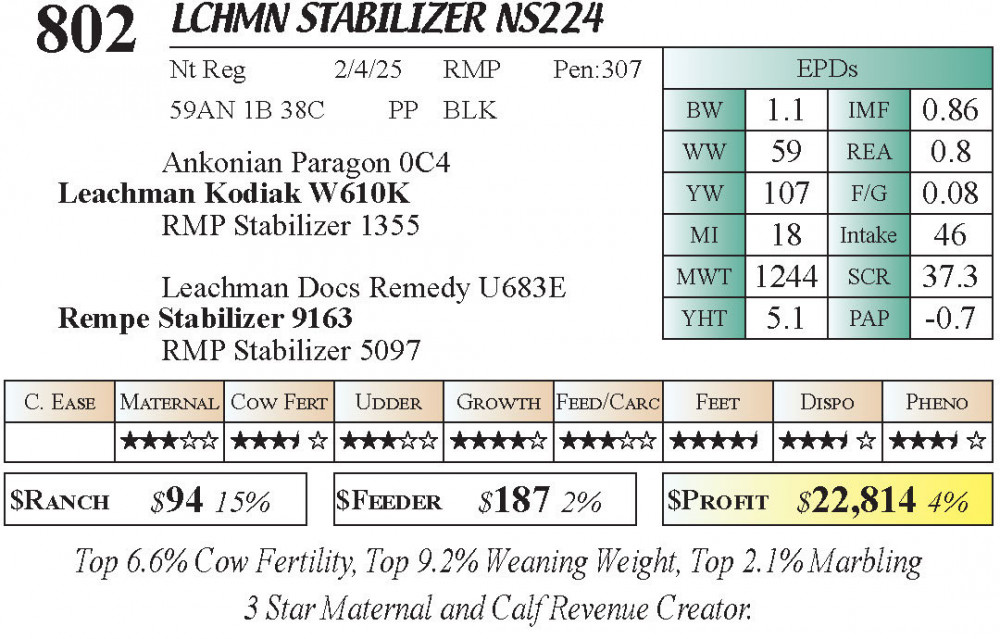 LCHMN Stabilizer NS224 (#802) 3.22.26 Leachman Cattle Spring Female Sale 11:30 AM MTN Stabilizer Female