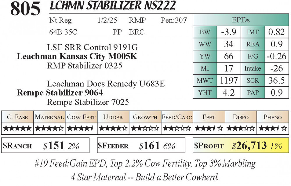 LCHMN Stabilizer NS222 (#805) 3.22.26 Leachman Cattle Spring Female Sale 11:30 AM MTN Stabilizer Female