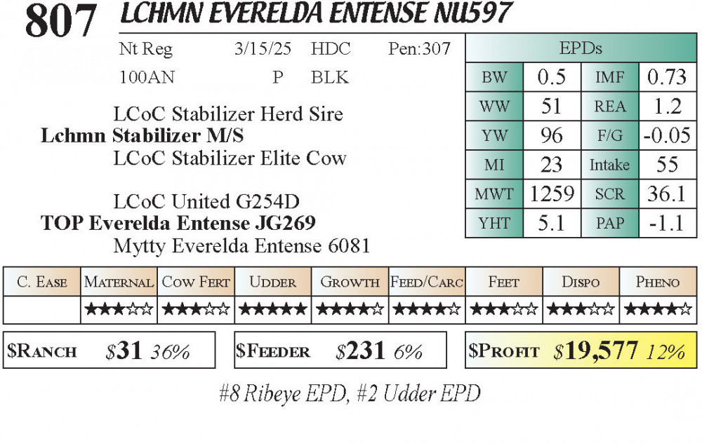 LCHMN Everelda Entense NU597 (#807) 3.22.26 Leachman Cattle Spring Female Sale 11:30 AM MTN Stabilizer Female