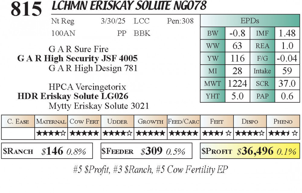 LCHMN Eriskay Solute NG078 (#815) 3.22.26 Leachman Cattle Spring Female Sale 11:30 AM MTN Stabilizer Female