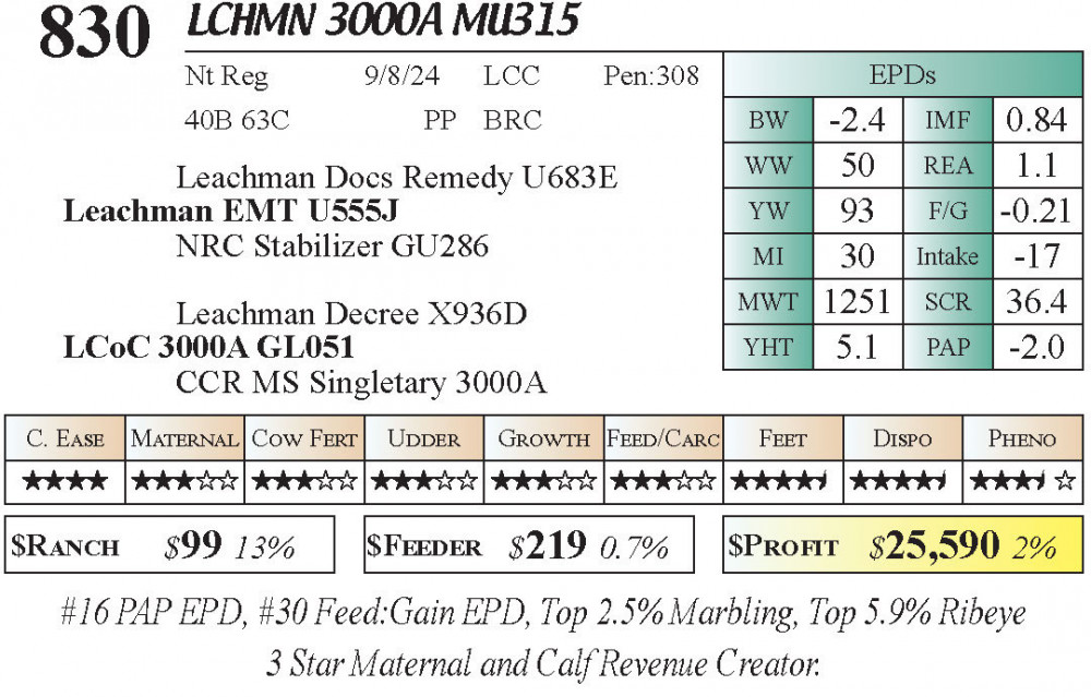 LCHMN 3000A MU315 (#830) 3.22.26 Leachman Cattle Spring Female Sale 11:30 AM MTN Stabilizer Female