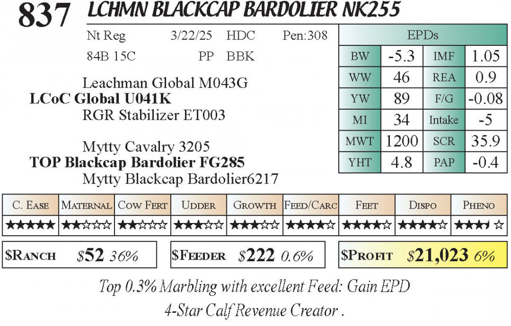 LCHMN Blackcap Bardolier NK255 (#837) 3.22.26 Leachman Cattle Spring Female Sale 11:30 AM MTN Stabilizer Female