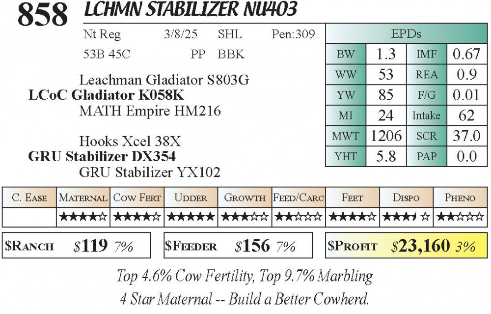 LCHMN Stabilizer NU403 (#858) 3.22.26 Leachman Cattle Spring Female Sale 11:30 AM MTN Stabilizer Female