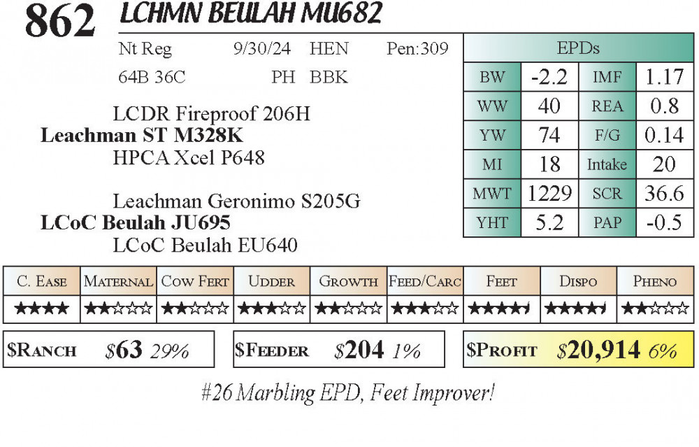 LCHMN Beulah MU682 (#862) 3.22.26 Leachman Cattle Spring Female Sale 11:30 AM MTN Stabilizer Female