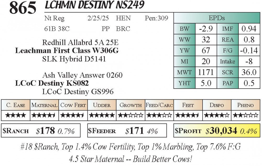 LCHMN Destiny NS249 (#865) 3.22.26 Leachman Cattle Spring Female Sale 11:30 AM MTN Stabilizer Female
