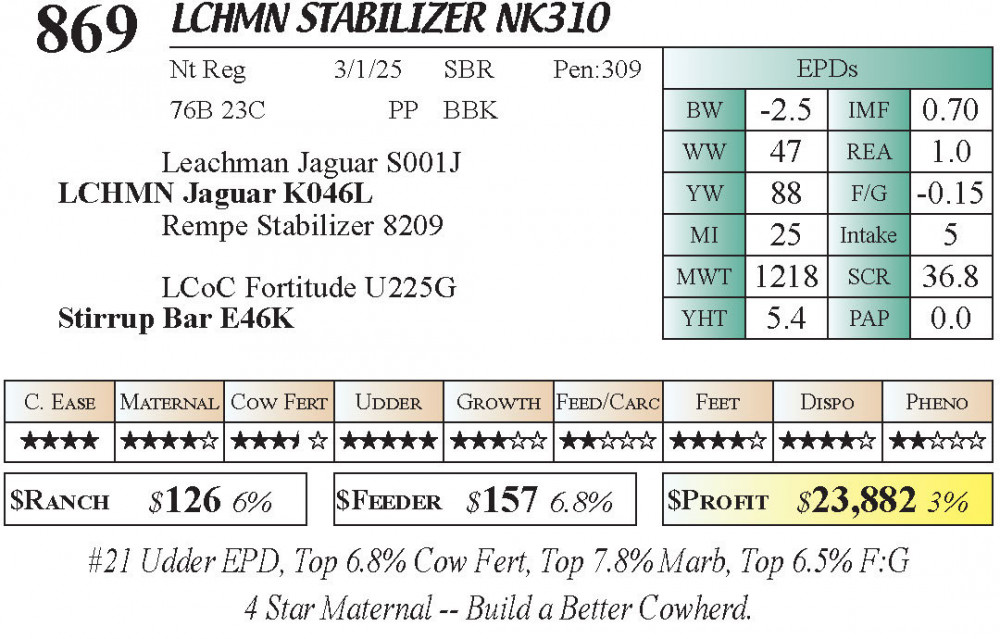 LCHMN Stabilizer NK310 (#869) 3.22.26 Leachman Cattle Spring Female Sale 11:30 AM MTN Stabilizer Female