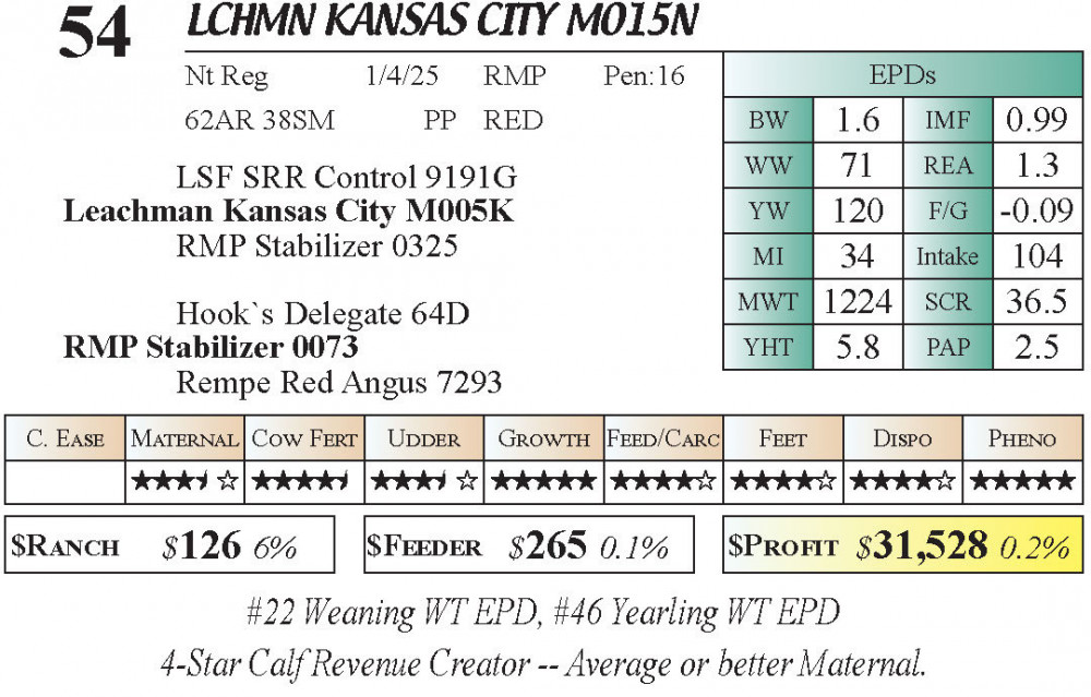 LCHMN Kansas City M015N (#54) 3.23.26 Leachman Cattle Spring Bull Sale 10:00 AM MTN Bull - Stabilizer