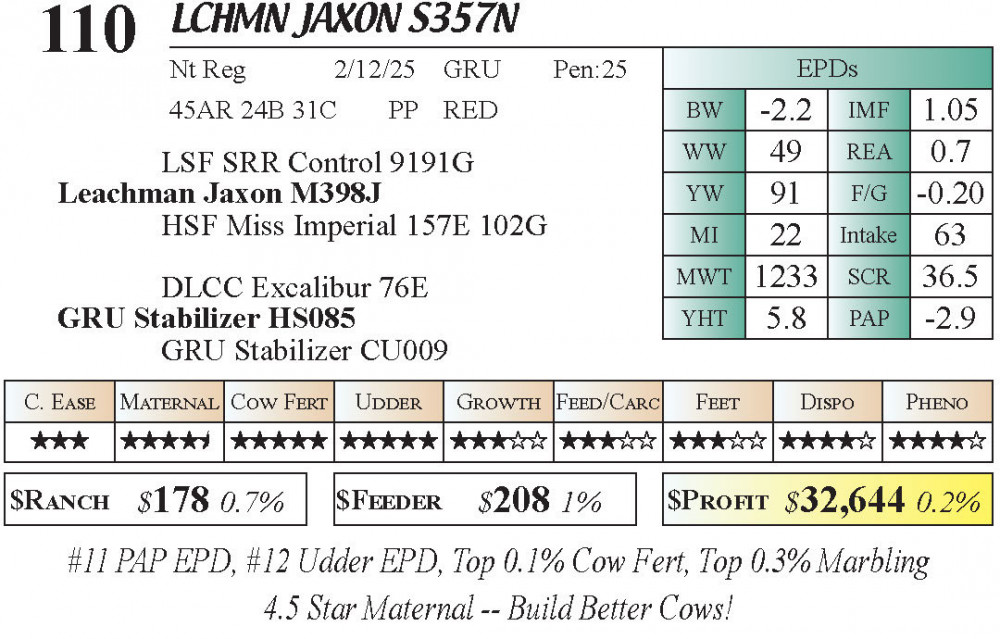 LCHMN Jaxon S357N (#110) 3.23.26 Leachman Cattle Spring Bull Sale 10:00 AM MTN Bull - Stabilizer