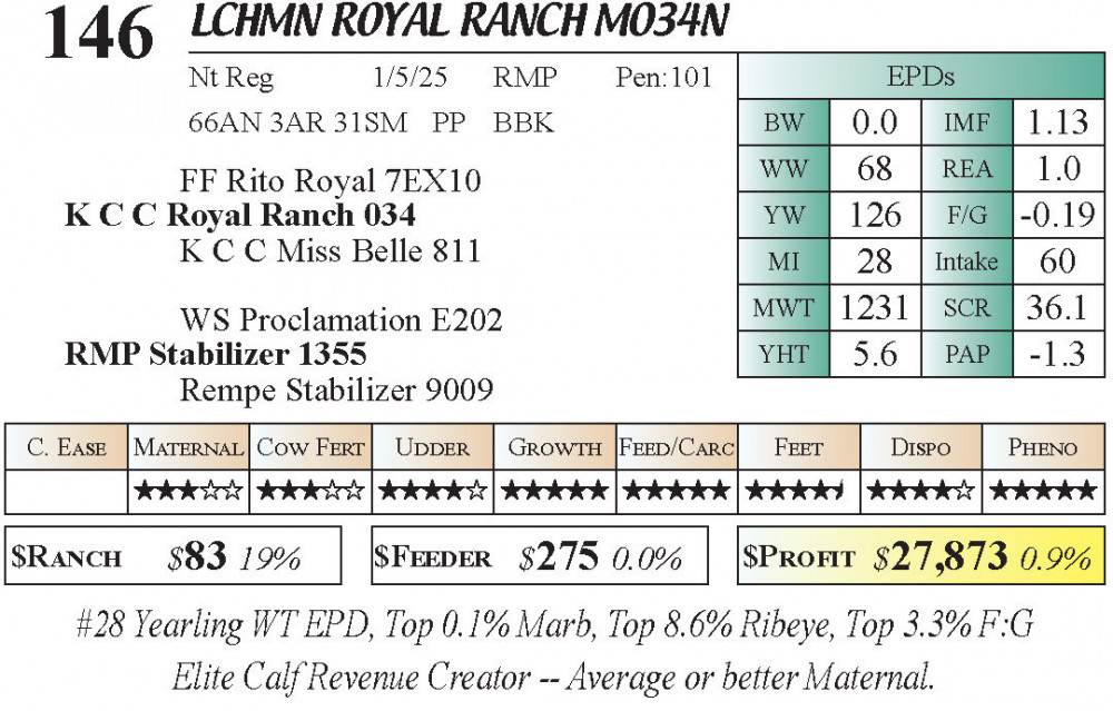 LCHMN Royal Ranch M034N (#146) 3.23.26 Leachman Cattle Spring Bull Sale 10:00 AM MTN Bull - Stabilizer