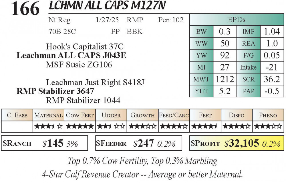 LCHMN ALL CAPS M127N (#166) 3.23.26 Leachman Cattle Spring Bull Sale 10:00 AM MTN Bull - Stabilizer