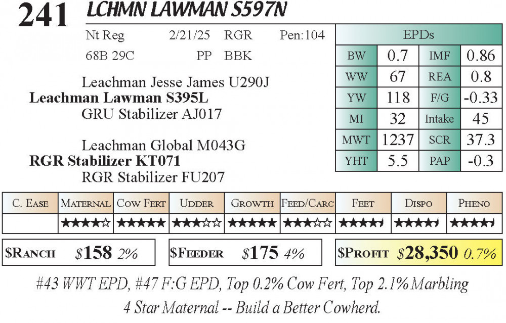 LCHMN Lawman S597N (#241) 3.23.26 Leachman Cattle Spring Bull Sale 10:00 AM MTN Bull - Stabilizer