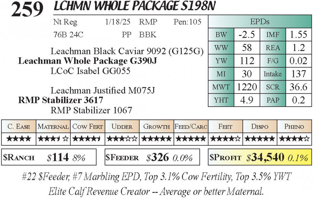LCHMN Whole Package S198N (#259) 3.23.26 Leachman Cattle Spring Bull Sale 10:00 AM MTN 4 & 5 Star Calving Ease Bulls Bull - Stabilizer Top 75 $Feeder Bulls