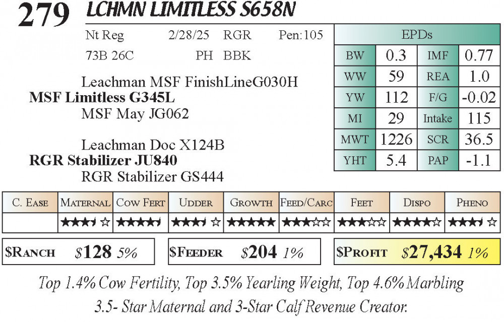 LCHMN Limitless S658N (#279) 3.23.26 Leachman Cattle Spring Bull Sale 10:00 AM MTN Bull - Stabilizer