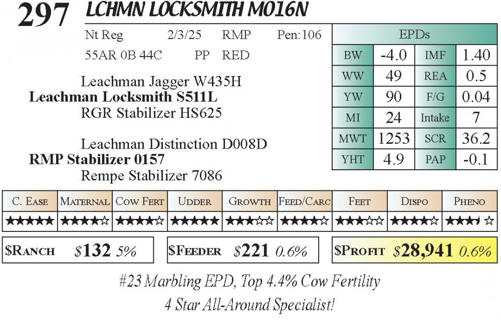 LCHMN Locksmith M016N (#297) 3.23.26 Leachman Cattle Spring Bull Sale 10:00 AM MTN 4 & 5 Star Calving Ease Bulls Bull - Stabilizer
