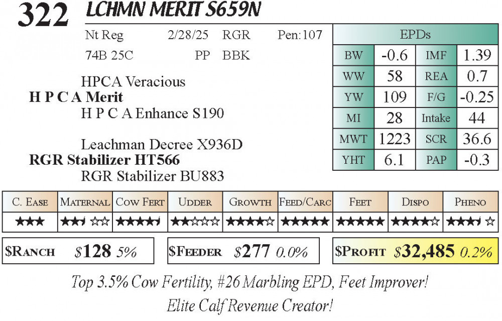 LCHMN Merit S659N (#322) 3.23.26 Leachman Cattle Spring Bull Sale 10:00 AM MTN Bull - Stabilizer