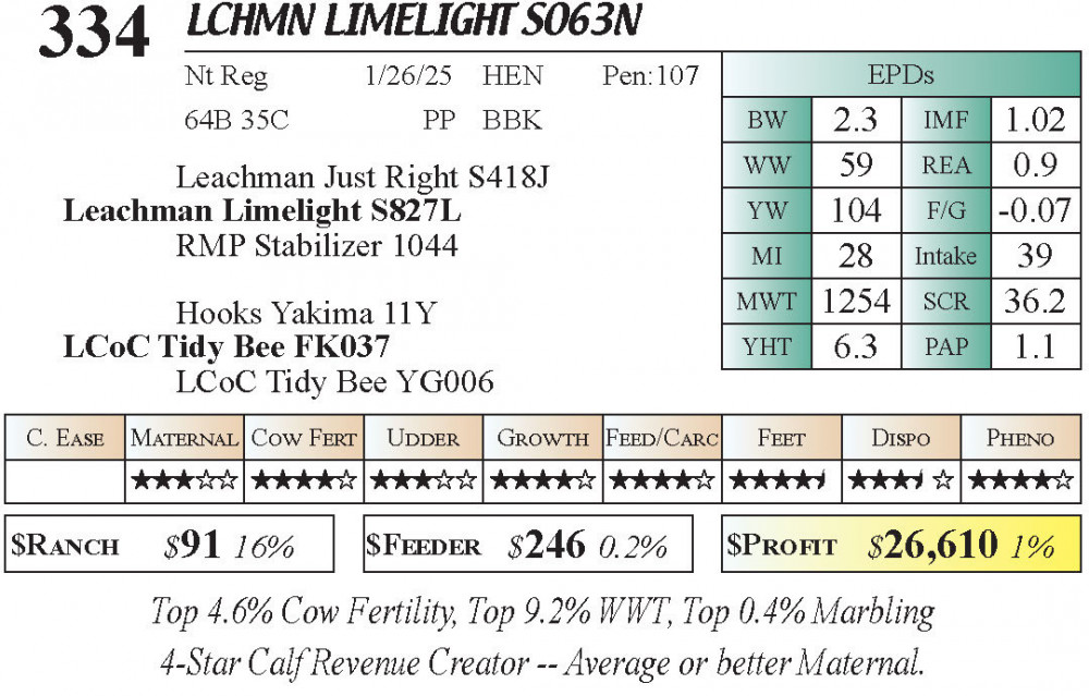 LCHMN Limelight S063N (#334) 3.23.26 Leachman Cattle Spring Bull Sale 10:00 AM MTN Bull - Stabilizer