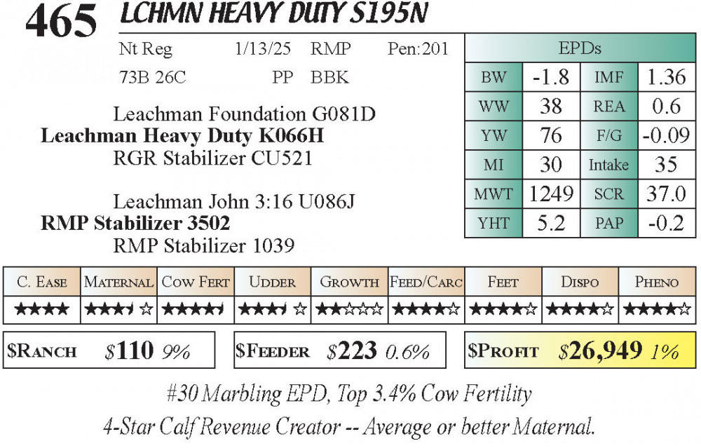 LCHMN Heavy Duty S195N (#465) 3.23.26 Leachman Cattle Spring Bull Sale 10:00 AM MTN 4 & 5 Star Calving Ease Bulls Bull - Stabilizer