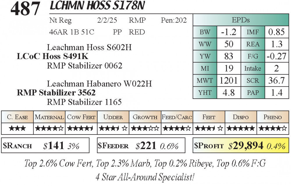 LCHMN Hoss S178N (#487) 3.23.26 Leachman Cattle Spring Bull Sale 10:00 AM MTN Bull - Stabilizer