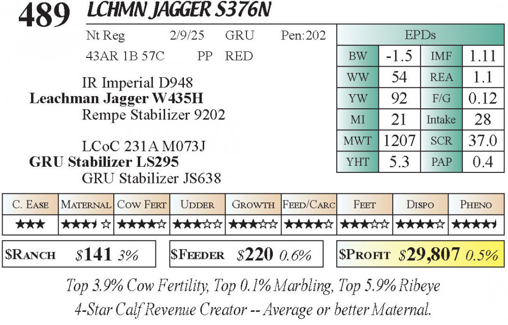 LCHMN Jagger S376N (#489) 3.23.26 Leachman Cattle Spring Bull Sale 10:00 AM MTN Bull - Stabilizer