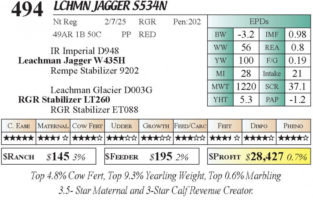 LCHMN Jagger S534N (#494) 3.23.26 Leachman Cattle Spring Bull Sale 10:00 AM MTN 4 & 5 Star Calving Ease Bulls Bull - Stabilizer
