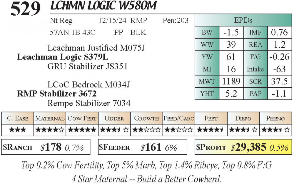 LCHMN Logic W580M (#529) 3.23.26 Leachman Cattle Spring Bull Sale 10:00 AM MTN Bull - Stabilizer