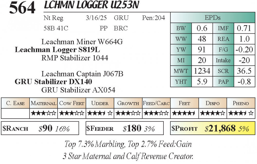LCHMN Logger U253N (#564) 3.23.26 Leachman Cattle Spring Bull Sale 10:00 AM MTN Bull - Stabilizer