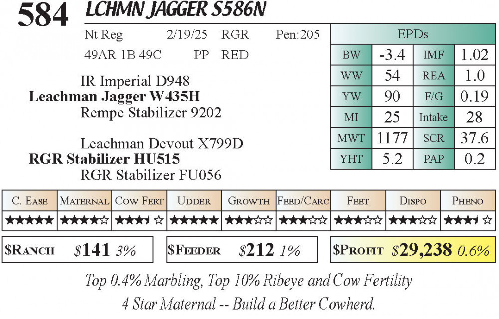 LCHMN Jagger S586N (#584) 3.23.26 Leachman Cattle Spring Bull Sale 10:00 AM MTN 4 & 5 Star Calving Ease Bulls Bull - Stabilizer