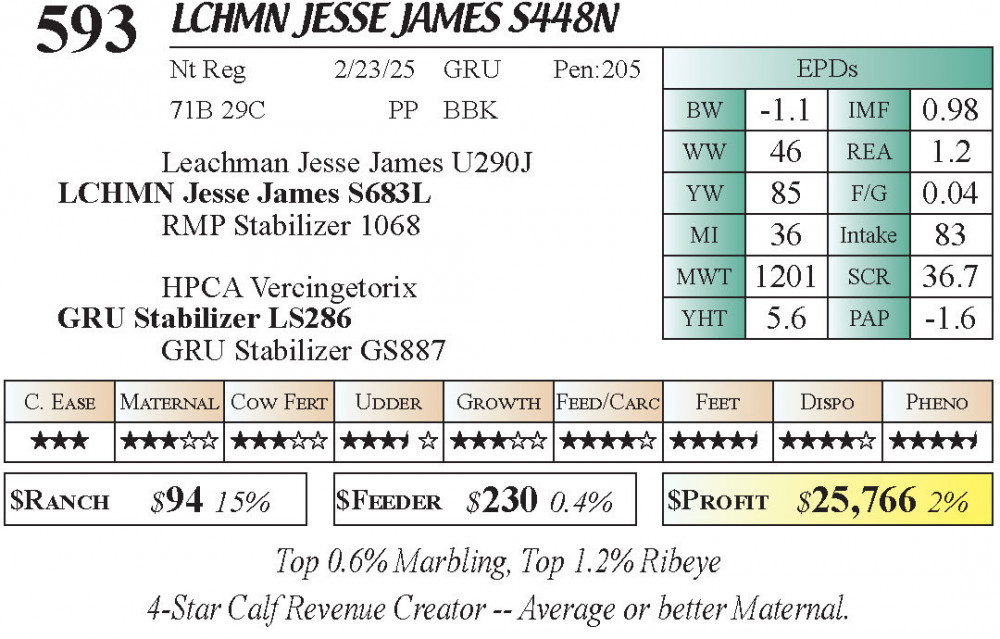 LCHMN Jesse James S448N (#593) 3.23.26 Leachman Cattle Spring Bull Sale 10:00 AM MTN Bull - Stabilizer