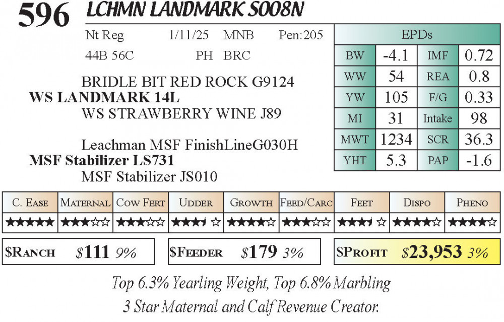 LCHMN Landmark S008N (#596) 3.23.26 Leachman Cattle Spring Bull Sale 10:00 AM MTN 4 & 5 Star Calving Ease Bulls Bull - Stabilizer