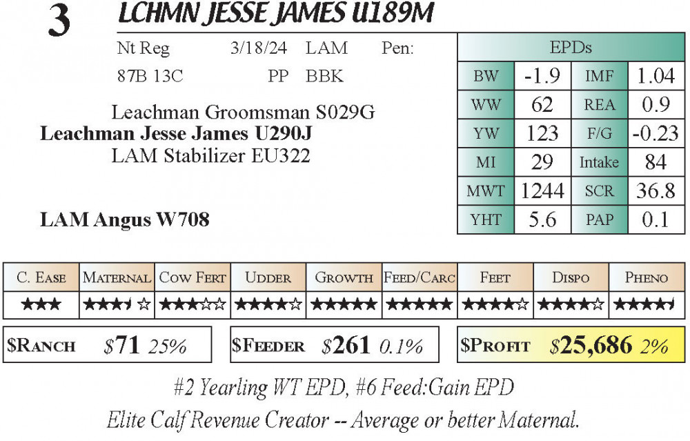 LCHMN JESSE JAMES U189M (#3) 4.2.26 I-70 Gateway Spring Bull & Female Sale 5:00pm CT