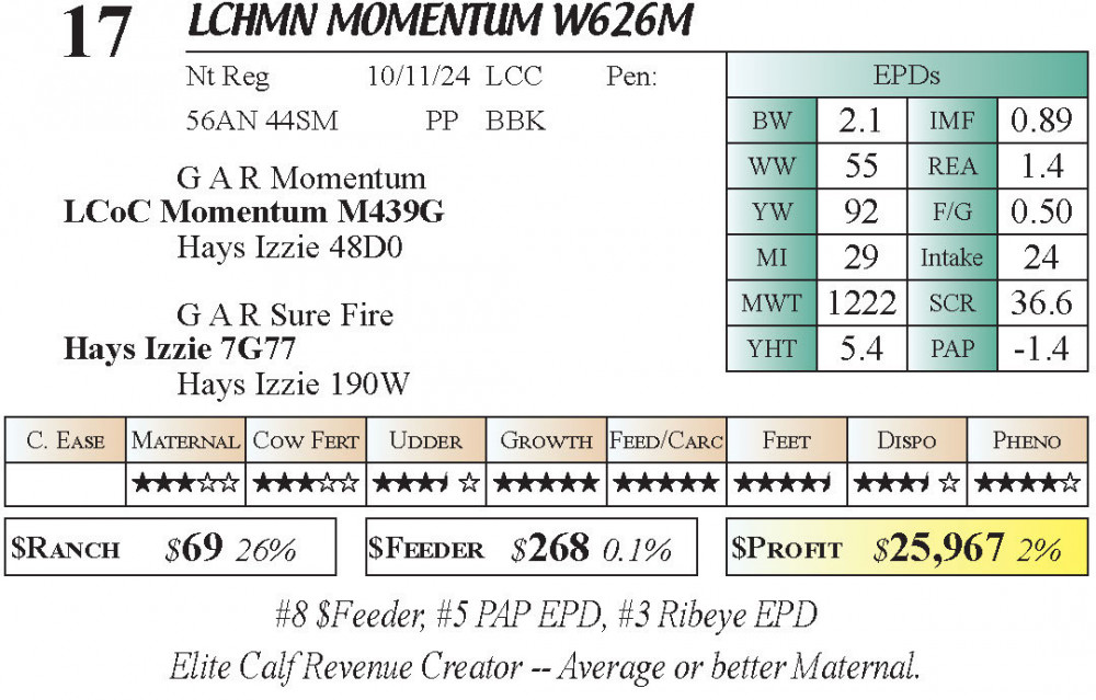LCHMN MOMENTUM W626M (#17) 4.2.26 I-70 Gateway Spring Bull & Female Sale 5:00pm CT