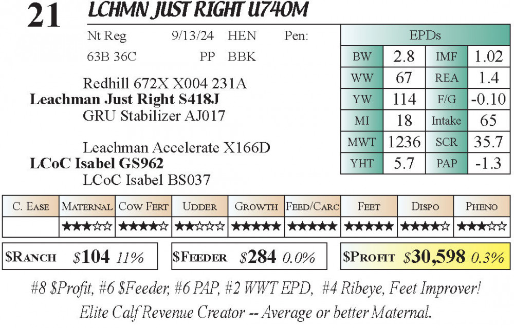 LCHMN JUST RIGHT U740M (#21) 4.2.26 I-70 Gateway Spring Bull & Female Sale 5:00pm CT