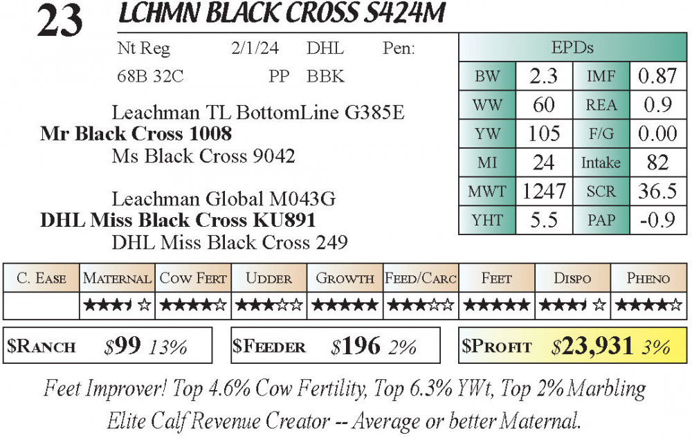 LCHMN BLACK CROSS S424M (#23) 4.2.26 I-70 Gateway Spring Bull & Female Sale 5:00pm CT