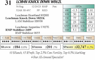 LCHMN KNOCK DOWN W862L (#31) 4.2.26 I-70 Gateway Spring Bull & Female Sale 5:00pm CT