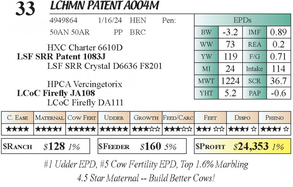 LCHMN PATENT A004M (#33) 4.2.26 I-70 Gateway Spring Bull & Female Sale 5:00pm CT