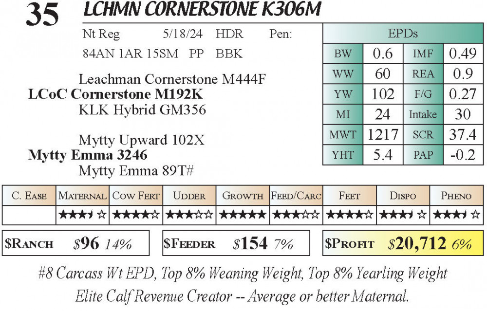 LCHMN CORNERSTONE K306M (#35) 4.2.26 I-70 Gateway Spring Bull & Female Sale 5:00pm CT