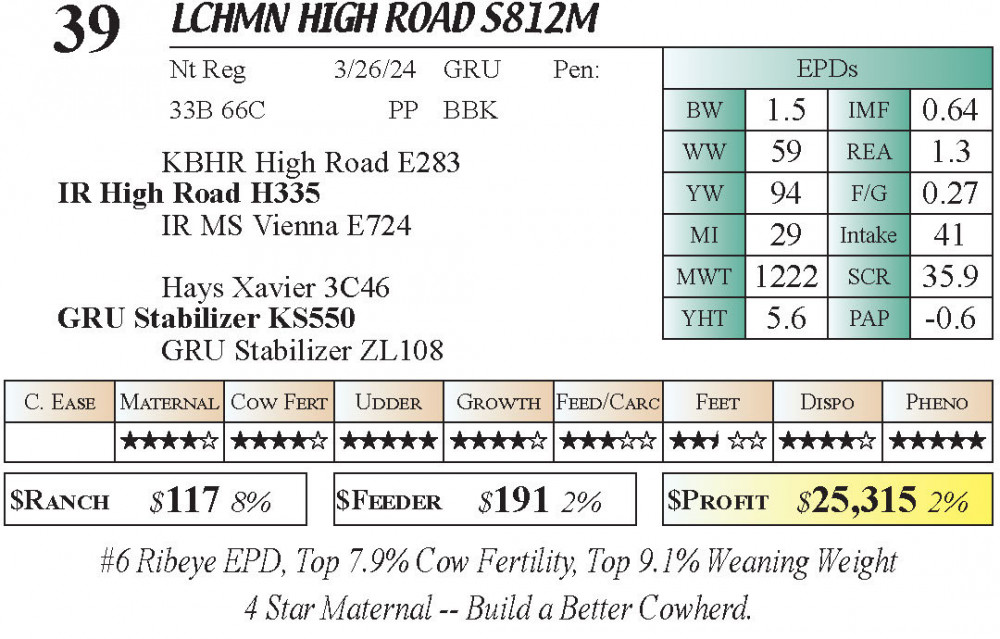 LCHMN HIGH ROAD S812M (#39) 4.2.26 I-70 Gateway Spring Bull & Female Sale 5:00pm CT