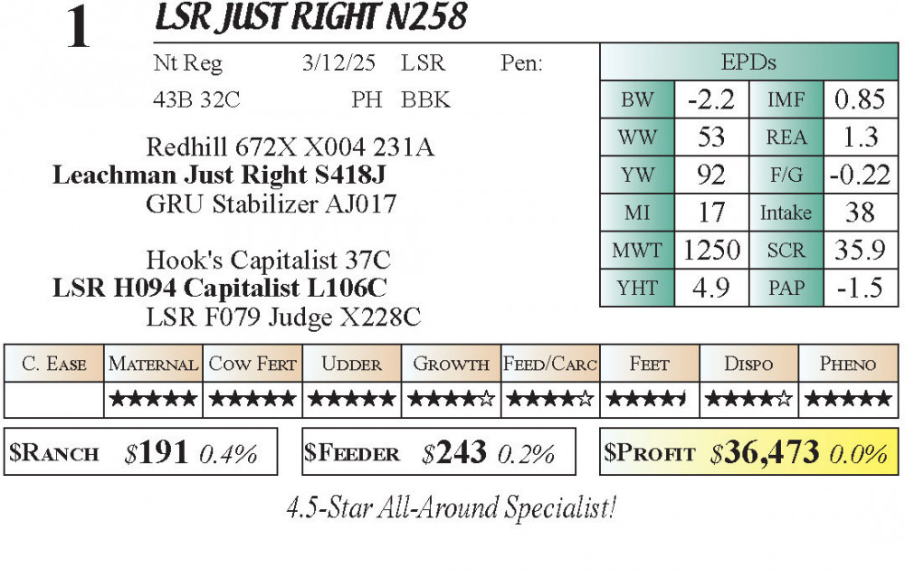 LSR Just Right N258 (#1) 4.20.26 Lazy Swede Ranch Bull Sale 6:00 PM MTN