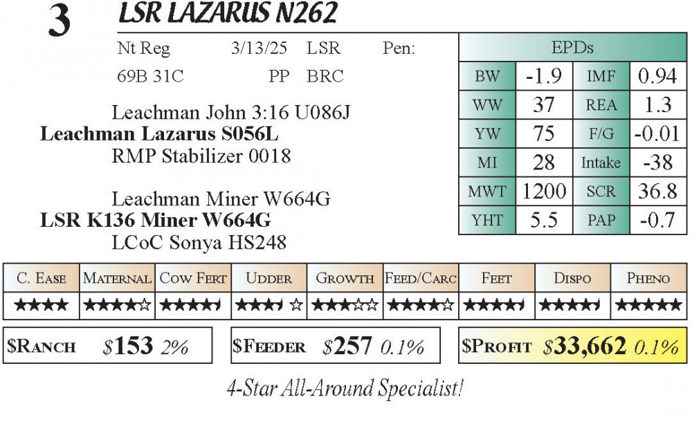 LSR Lazarus N262 (#3) 4.20.26 Lazy Swede Ranch Bull Sale 6:00 PM MTN