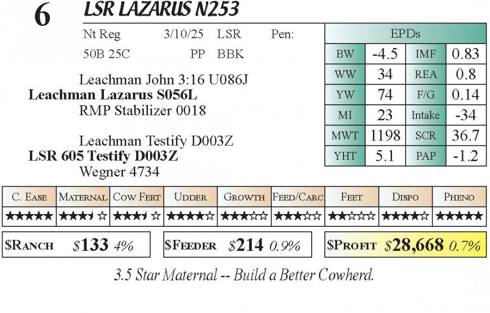 LSR Lazarus N253 (#6) 4.20.26 Lazy Swede Ranch Bull Sale 6:00 PM MTN