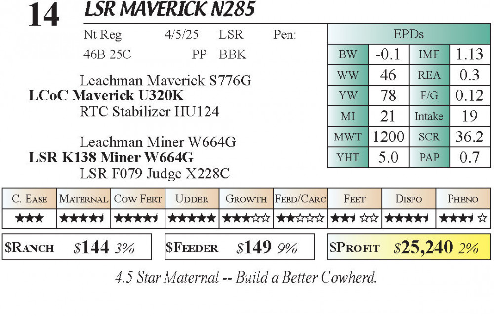 LSR Maverik N285 (#14) 4.20.26 Lazy Swede Ranch Bull Sale 6:00 PM MTN