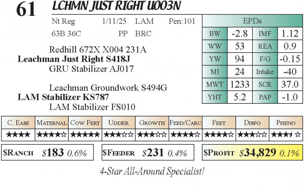 LCHMN Just Right U003N (#61) Grass Time Private Treaty Online Bull Sale 3-5 Star Calving Ease PT Bulls - Stabilizer