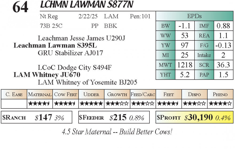 LCHMN Lawman S877N (#64) Grass Time Private Treaty Online Bull Sale PT Bulls - Stabilizer