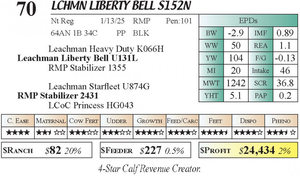 LCHMN Liberty Bell S152N (#70) Grass Time Private Treaty Online Bull Sale 3-5 Star Calving Ease PT Bulls - Stabilizer