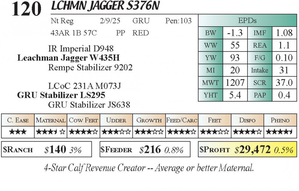 LCHMN Jagger S376N (#120) Grass Time Private Treaty Online Bull Sale 3-5 Star Calving Ease PT Bulls - Stabilizer