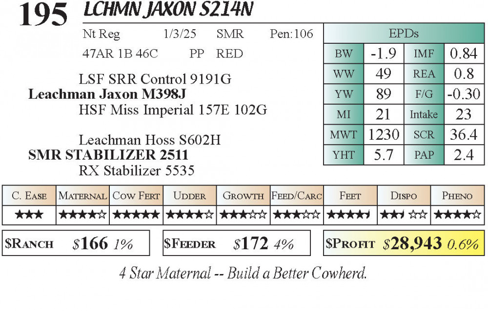 LCHMN Jaxon S214N (#195) Grass Time Private Treaty Online Bull Sale 3-5 Star Calving Ease PT Bulls - Stabilizer