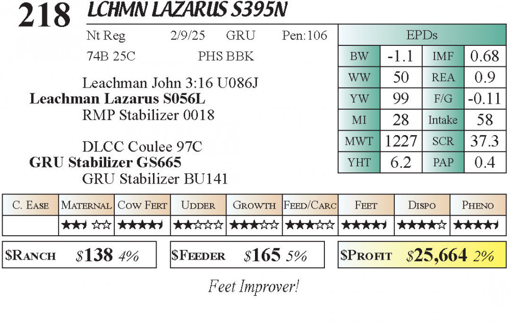 LCHMN Lazarus S395N (#218) Grass Time Private Treaty Online Bull Sale PT Bulls - Stabilizer