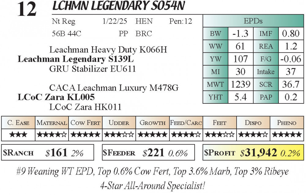 #9 Weaning WT EPD, Top 0.6% Cow Fert, Top 3.6% Marb, Top 3% Ribeye